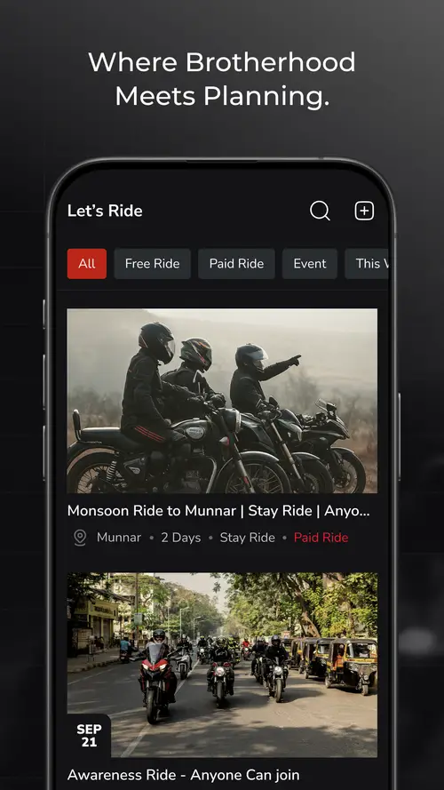 🗺️ Plan & Join Rides – Find upcoming rides or create your own.